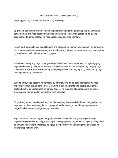 feature writing examples tagalog pdf