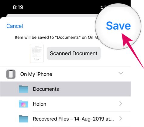 where do scan documents save on iphone
